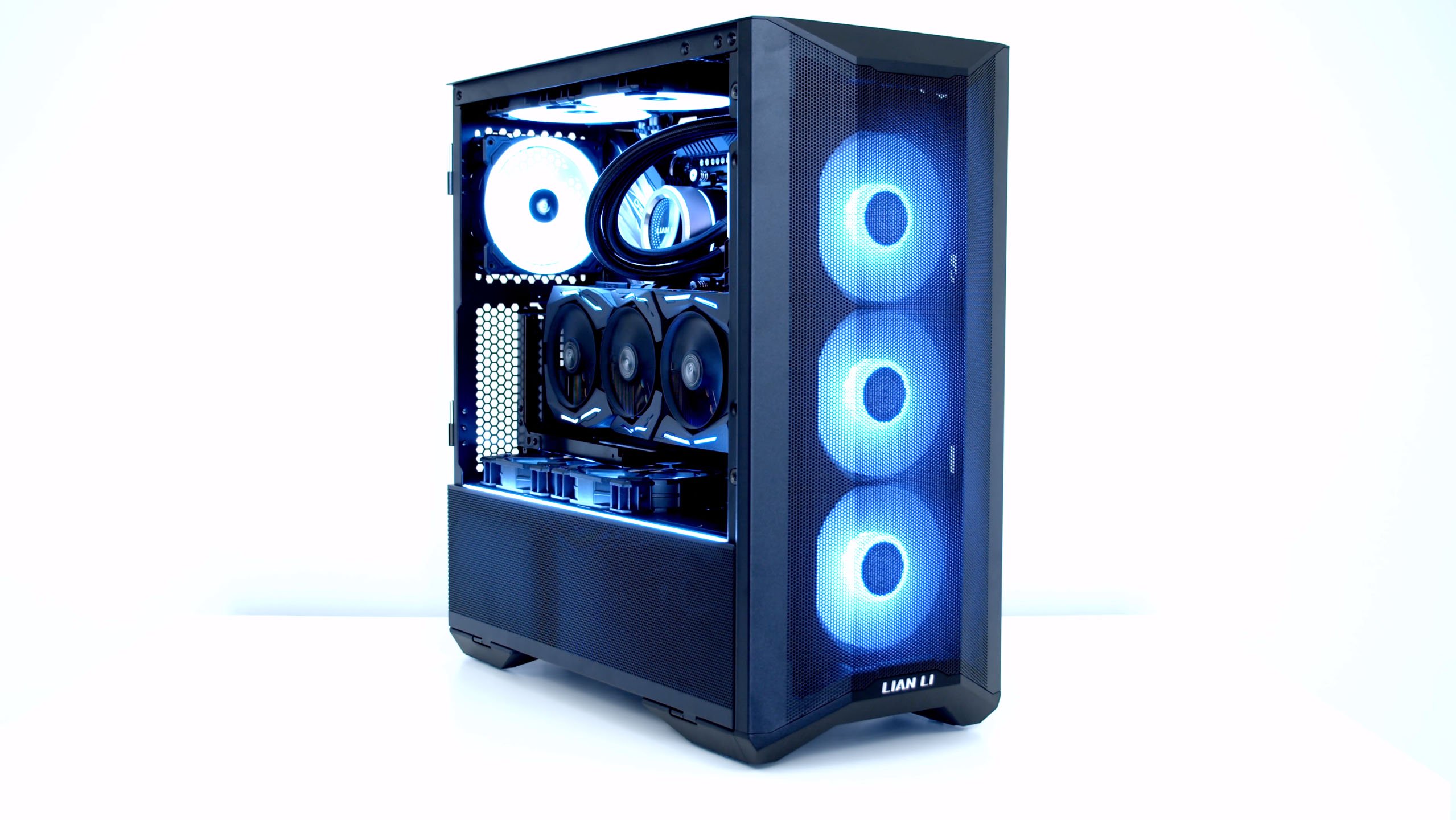 (1 front 120 mm fan on bottom, 2 120 mm fans on bottom)