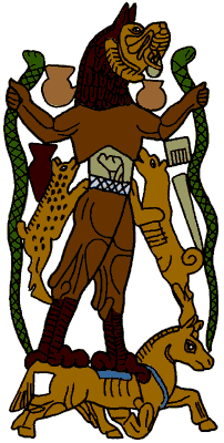 Pazuzu (Demon of Chaos with lion/dog head, eagle-like taloned feet, a scorpion's tail, and a serpentine penis.) |