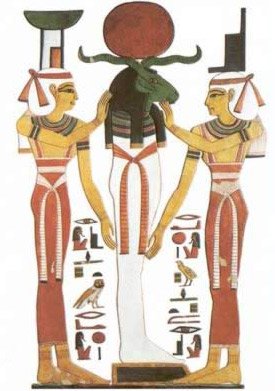 The hieroglyphs on the image to the left says, "Asar rests in Ra and Ra rests in Asar."
